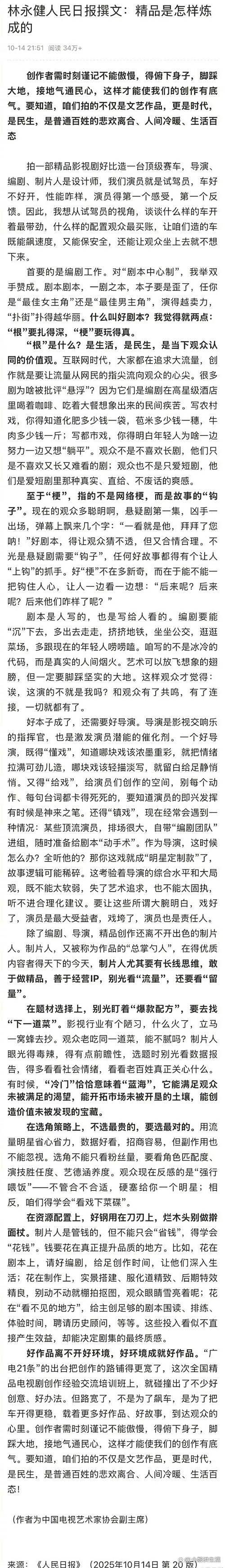 那还真的是少,这几天著名的演员林永健就在人民日报上撰文。