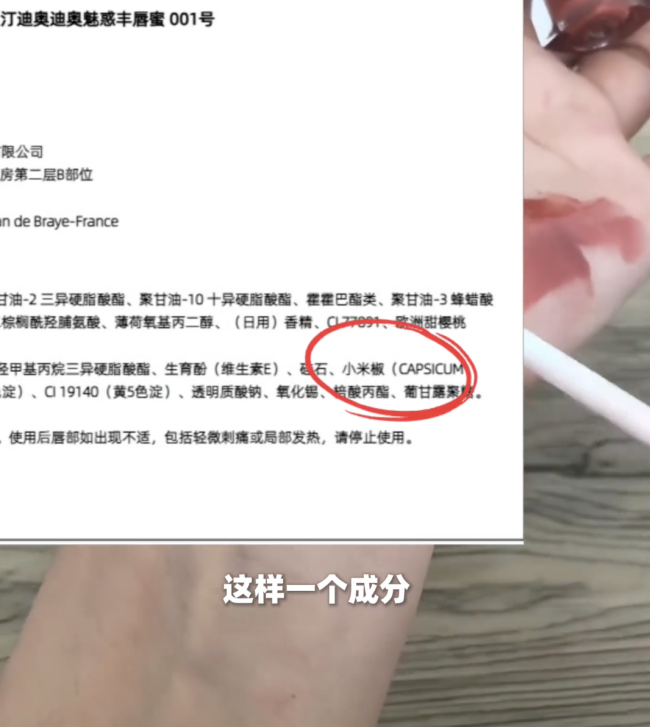 唇蜜含小米椒提取物?客服:丰唇 用户反馈辣感体验!近日,多位用户发帖表示,在使用迪奥和丝芙兰等品牌的丰唇蜜时感到嘴唇有发热和火辣感。他们查看成分表后发现,这些产品中含有小米椒果提取物。对此,DIOR迪奥美妆官方旗舰店客服解释称,该款丰唇蜜确实添加了小米椒果提取物,主要目的是为了达到丰唇效果。部分顾客在初次使用时可能会感受到轻微的辣感,这是产品作用于双唇时的正常反应,通常会在短时间内逐渐消退。